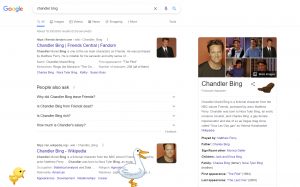 - The Friends Easter Egg. If you look up any of the main characters of Friends, you’ll see a little icon next to their name. When you press it, a little animation pops up specific to their character! Make sure you turn the sound up too for some classic Friends soundbites!