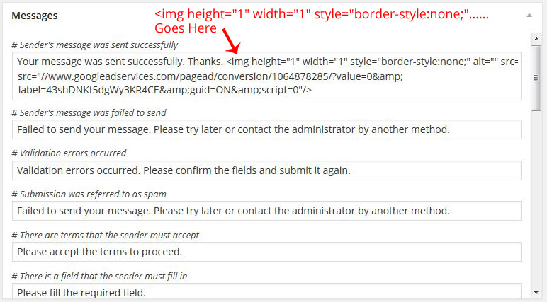 Now don’t let this get you too worried. It may look complicated, but installing the code in the Wordpress Contact Form 7 plugin couldn’t be any easier. The only part of the code you need to think about is this one here: